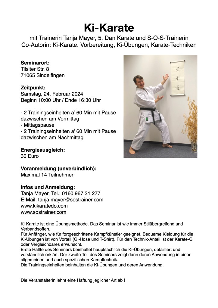 24. Februar 2024 findet ein Ki-Karate Seminartag statt: